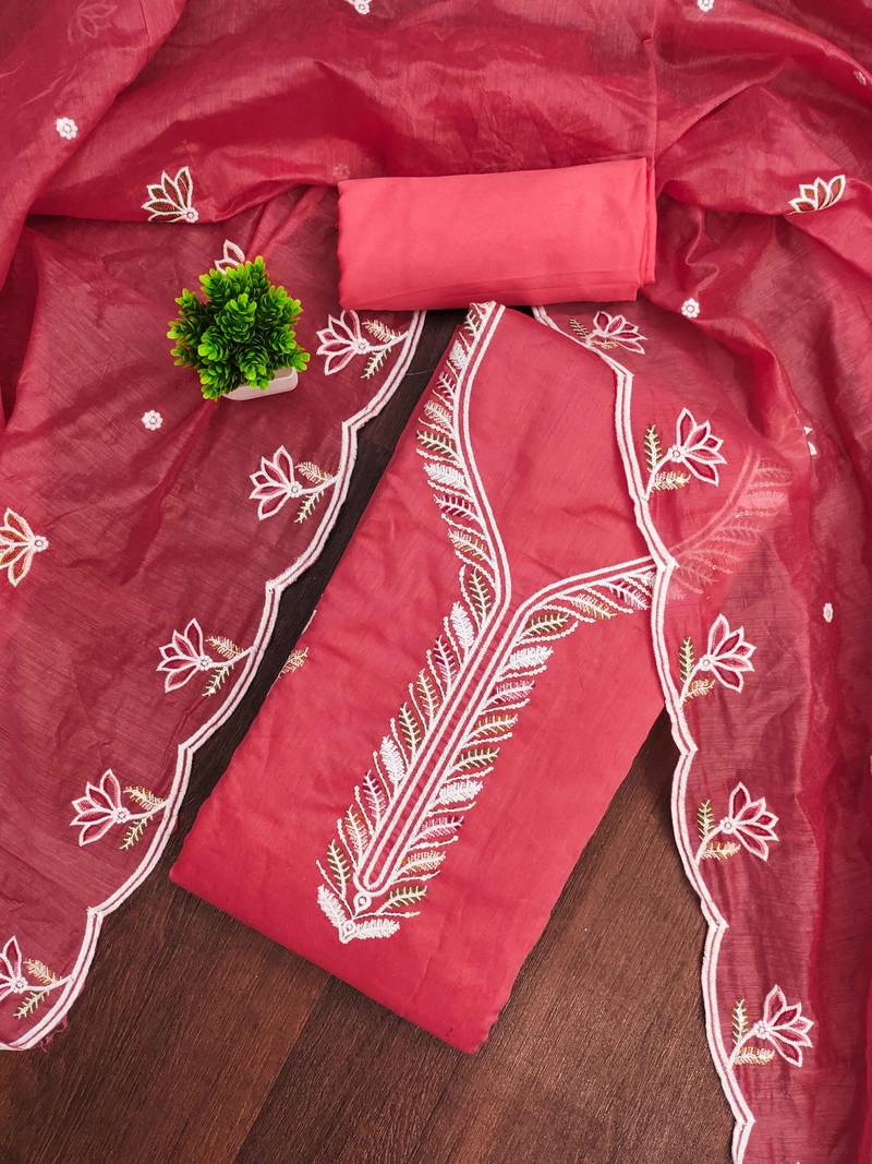 If you find the product for less we'll match it! Know MoreHandcrafted Heavy Thread Sequence Embroidery And Fancy Border With Embroidered Dupatta Straight Style 2.00 Mtr Unstitched Dress Material Top Of Pink Colour Chanderi Cotton Fabric With 2 Mtr Micro Crape As Lining Inner Fabric Also Including 3.60 Mtr Unstiched Bottom Material Of Pink Colour Micro Crape Fabric With 2.00 Mtr Dupatta Of Pink Colour Chanderi Cotton Fabric By Shadow & Saining Brand