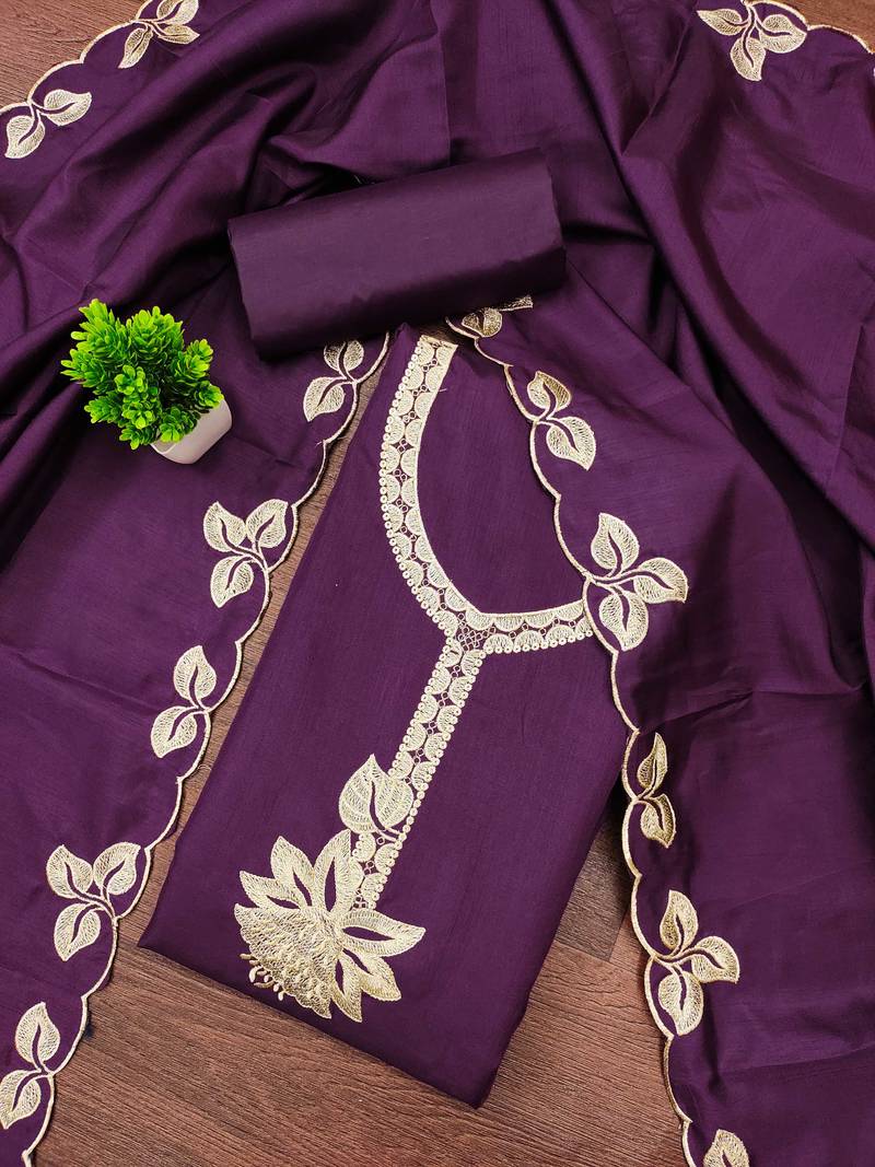 If you find the product for less we'll match it! Know MoreHandcrafted Heavy Thread Embroidery And Fancy Border With Designer Embroidered Dupatta Straight Style 2.00 Mtr Unstitched Dress Material Top Of Purple Colour Cotton Fabric Also Including 2.20 Mtr Chudidar Style Bottom Piece Material Of Purple Colour Cotton Fabric With 2.00 Mtr Dupatta Of Purple Colour Cotton Fabric By Shadow & Saining Brand