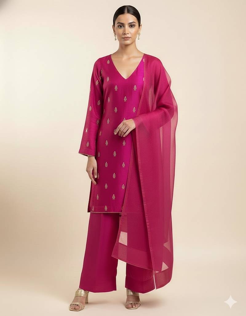 Magenta Chanderi Printed Kurta Set