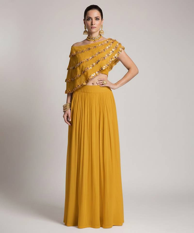 Yellow Embroidered Crepe Lehenga Set