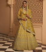 • Style : A Line Lehenga • Fabric : Silk • Work : Embroidered • Color : Mustard Blouse Details