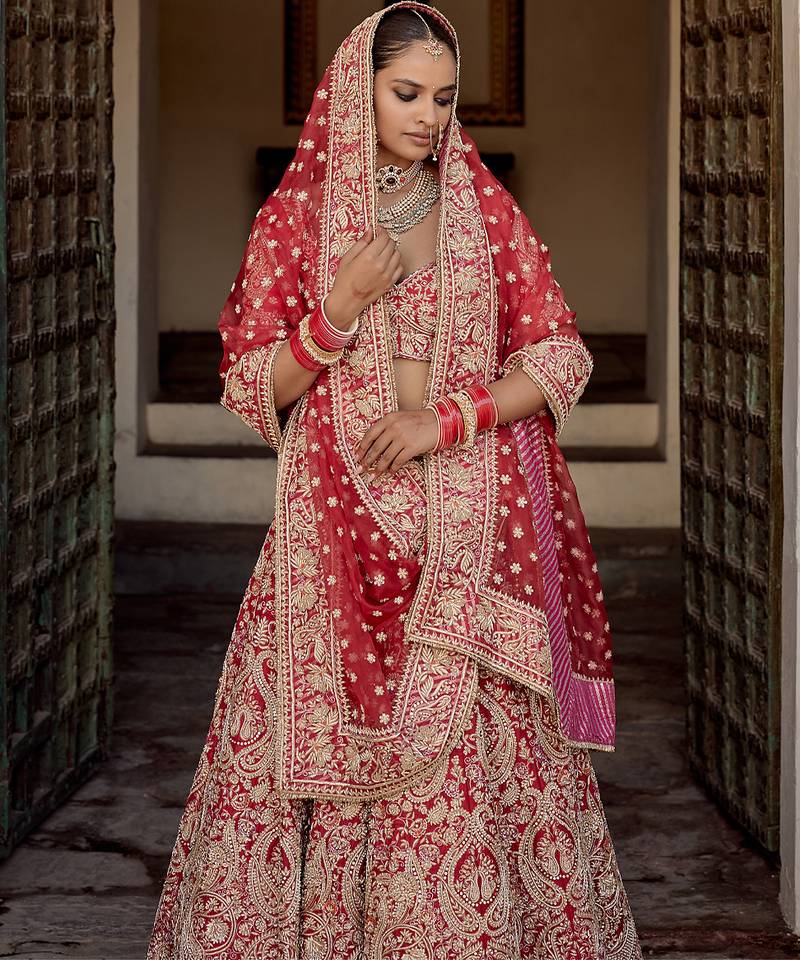 • Dupatta : Color- Red / Fabric- Organza Dupatta Details