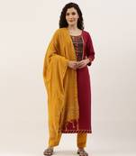 • Product Id : 3673856 • Package Details : Top/1 Bottom/1 Dupatta • Type : Dress Materials • Occasion : Wedding • Work : Embroidered • Type : Gota Patti • Look : Fashion • Sleeve : Quarter Sleeve • Neck Style : Round Neck • Stitching : Unstitched • Fabric : Cotton • Color : Maroon • Min Bustsize Fit : 30 • Max Bustsize Fit : 42 Stitching [+]