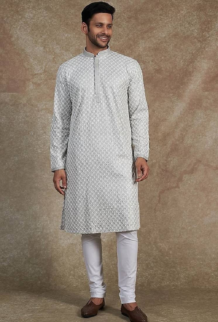 • Product Id : 4687056 • Package Details : 1 Kurta 1 Pyjama • Type : Kurta Pajama • Fabric : Rayon • Work : Embroidered • Type : Sequins Work • Sleeve : Full Sleeve • Color : Grey • Bottom Fabric : Cotton • Bottom Color : White • Top Color : Grey • Bottom Style : Pyjama • Top Fabric : Rayon • Stitching : Stitched Payments [+]
