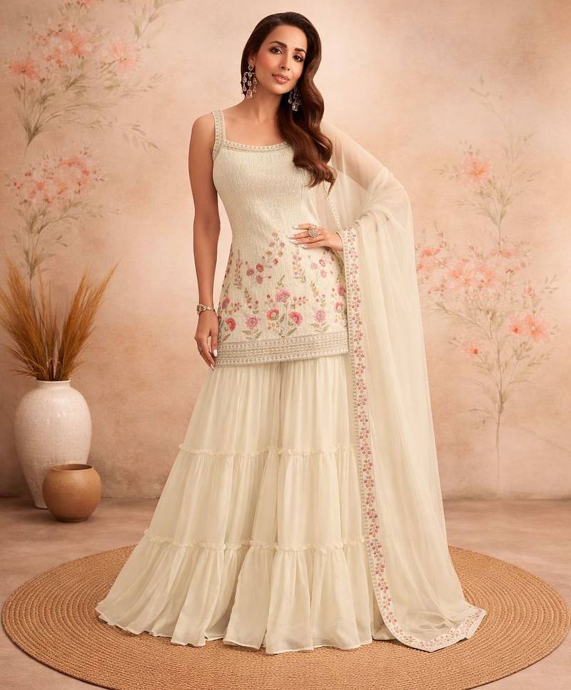 Beige Faux Georgette Sharara Salwar Suit Collection Un Stitched Unstitched