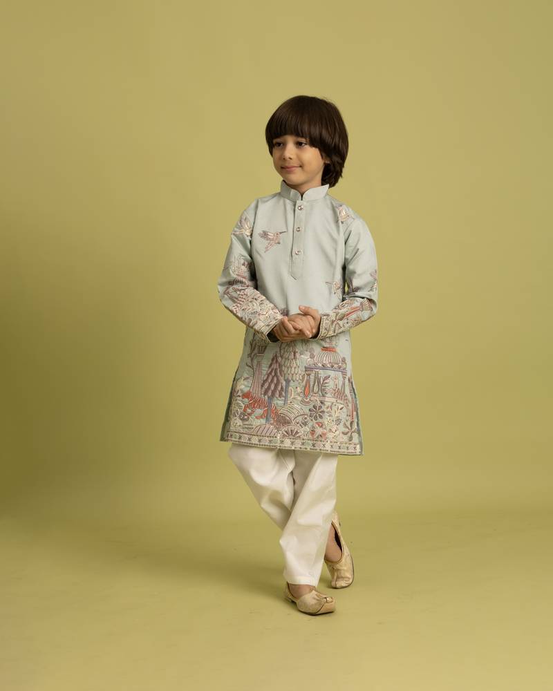 Pista Green Viscose Silk Thread Embroidered Boys Kurta Pajama