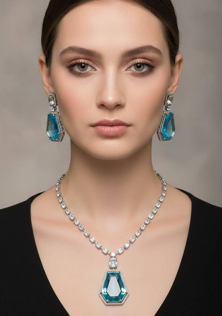• Product Id : 4732632 • Package Details : 1 Necklace 1 Earring • Type : Necklace Sets • Jewellery Work : Pearl • Color : Blue • Plating : Brass • Base Material : Alloy Payments [+]