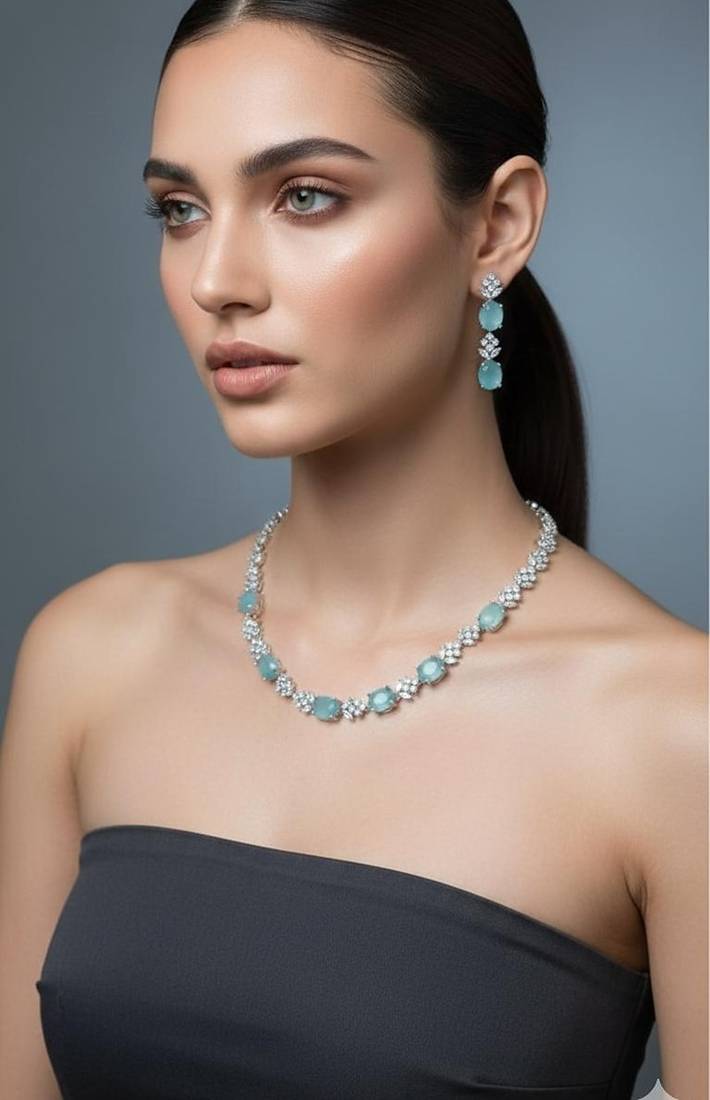 • Product Id : 4732630 • Package Details : 1 Necklace 1 Earring • Type : Necklace Sets • Jewellery Work : Stone • Color : Blue • Plating : Brass • Base Material : Alloy Payments [+]