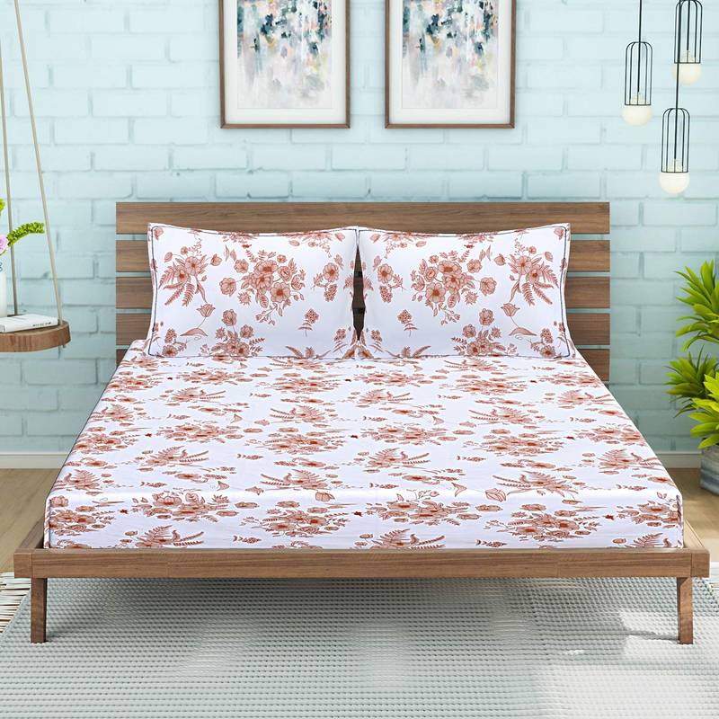 Siroki Bond Coffee Premium Cotton Printed Bedsheets With Pillow Cover