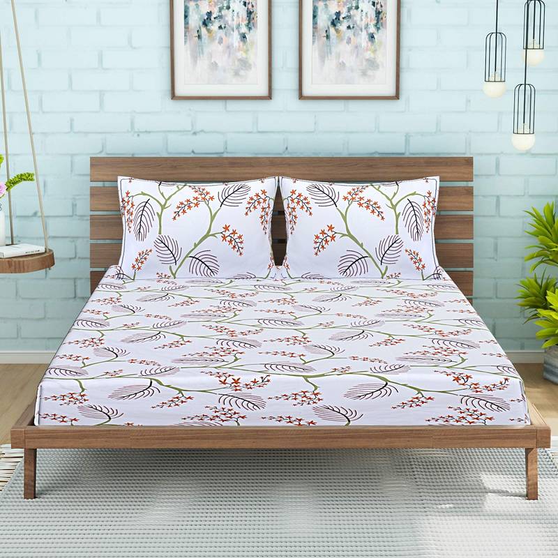 Siroki Bond Off White Premium Cotton Printed Bedsheets With Pillow Cover