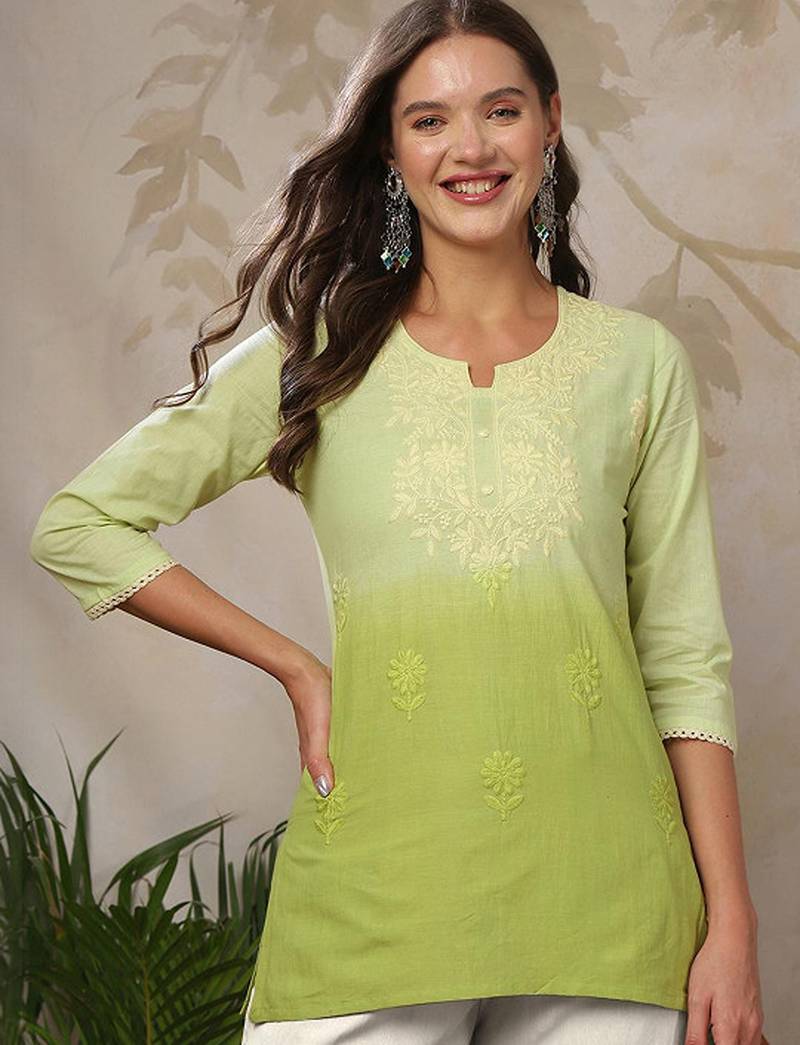 If you find the product for less we'll match it! Know More• Product Id : 4744232 • Package Details : 1 Kurta • Type : Long Kurti Designs • Fabric : Cotton • Work : Woven • Type : Abstract Print • Sleeve : Quarter Sleeve • Neck Style : Round Neck • Color : Green • Stitching : Stitched • Length : 44.0 General - Color and Texture may have slight variation. This happens because of photography.