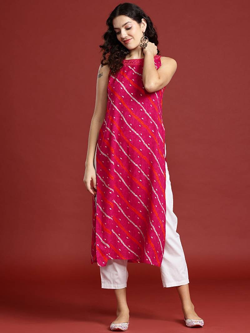 If you find the product for less we'll match it! Know More• Product Id : 4744198 • Package Details : 1 Kurta • Type : Long Kurti Designs • Fabric : Art Silk • Work : Woven • Type : Abstract Print • Sleeve : Sleeveless • Neck Style : Halter Neck Kameez • Stitching : Stitched • Color : Fuchsia • Length : 44.0 General - Color and Texture may have slight variation. This happens because of photography.