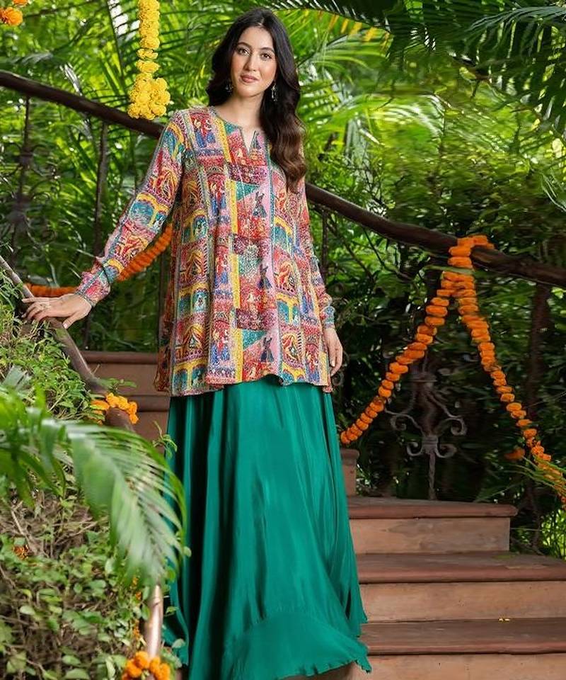 • Product Id : 4716585 • Package Details : 1 Tunic Kurta / 1 Skirt • Type : Co Ord Sets • Work : Printed • Look : Traditional • Sleeve : Full Sleeve • Color : Multicolor • Stitching : Stitched • Fabric : Chinon • Length : 35.0 Payments [+]