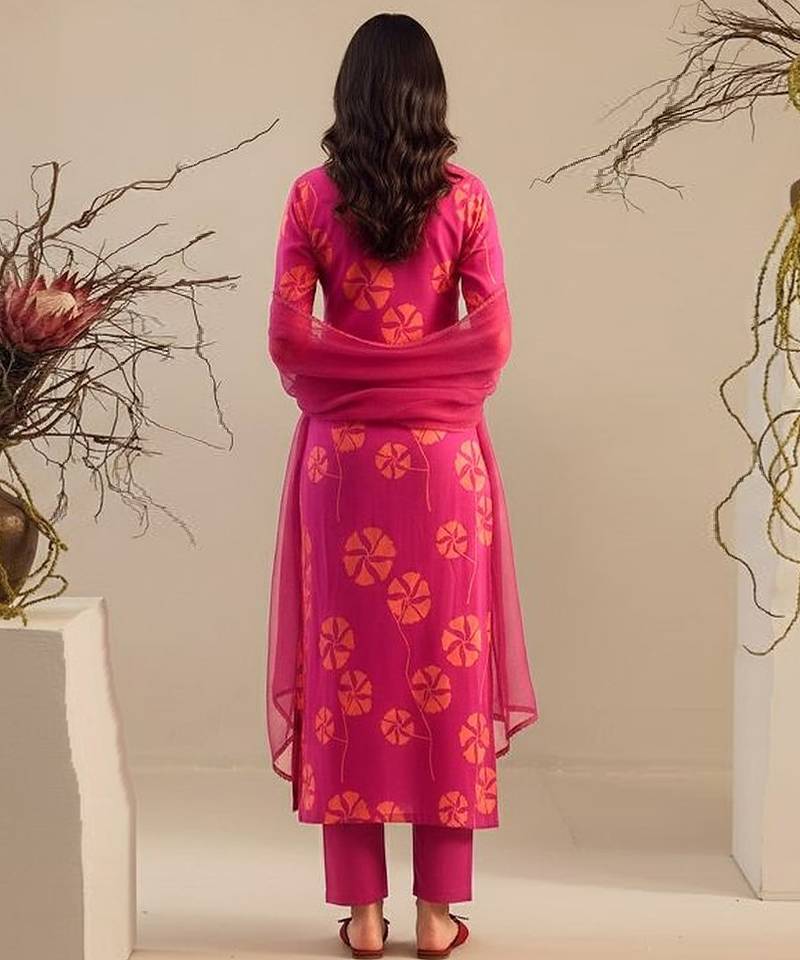 This Pink Georgette Kurta Set Features Stylish Prints For A Light And Feminine Appearance. The Airy Fabric Ensures Comfort And Flow. Perfect For Festive Mornings, Casual Celebrations, And Cultural Gatherings.