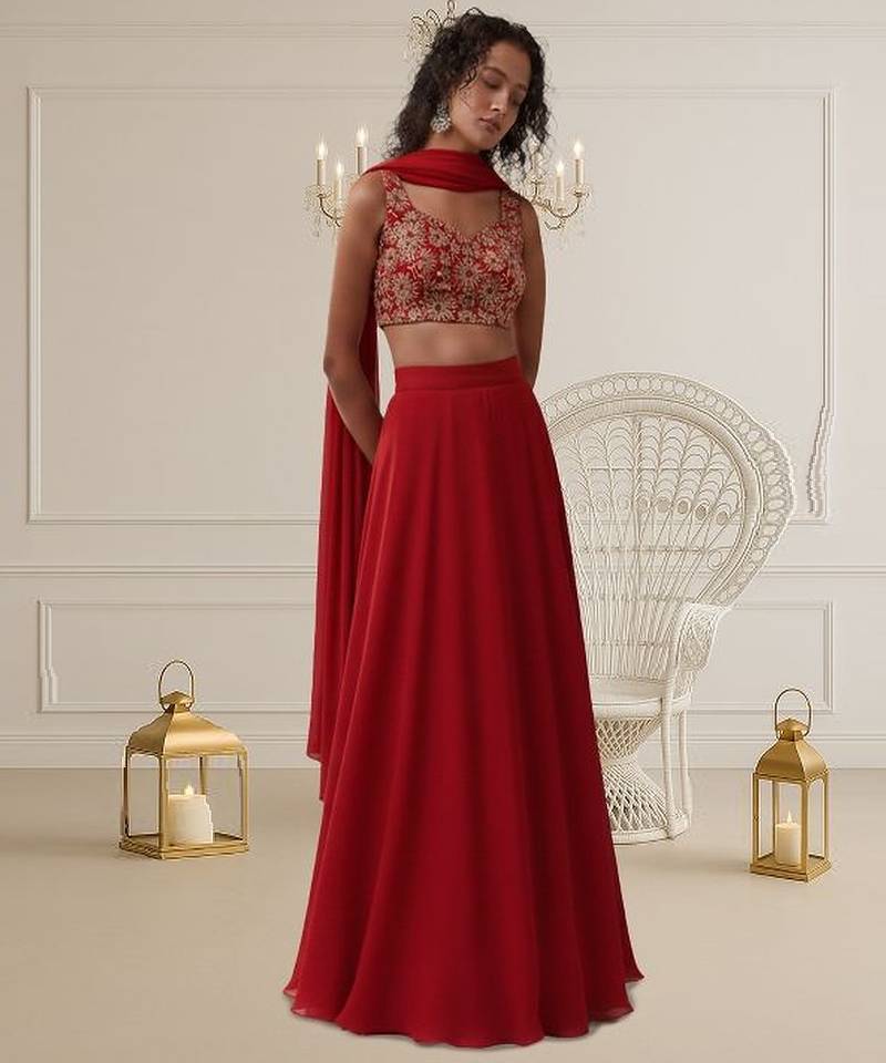 • Dupatta : Color- Red / Fabric- Na Lehenga Details