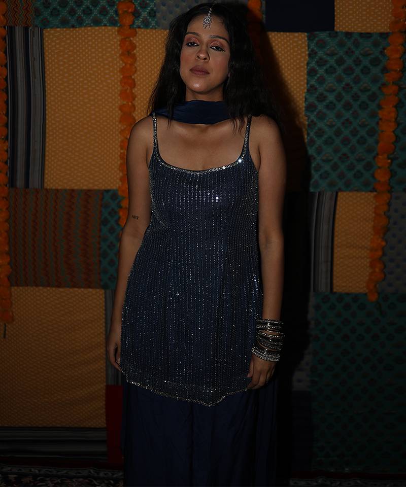 This Blue Embroidered Crepe Kurta Set Showcases Effortless Elegance And Contemporary Charm. Crafted From Lightweight Crepe Fabric, It Features Intricate Embroidery That Adds A Refined Touch. Perfect For Festive Occasions And Celebrations, It Offers Comfort, Grace, And Timeless Appeal To Your Ethnic Wardrobe.