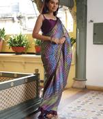 • Saree : Color- Blue / Fabric- Chiffon • Blouse : Color- Magenta / Fabric- Chiffon Saree Details