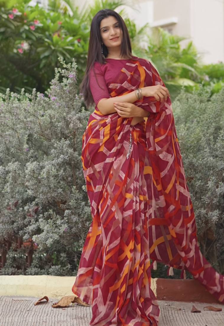 Elegant and lightweight saree crafted from soft cotton blend fabric, featuring stylish geometric prints. Comfortable for all-day wear, perfect for office, casual outings, and small gatherings.