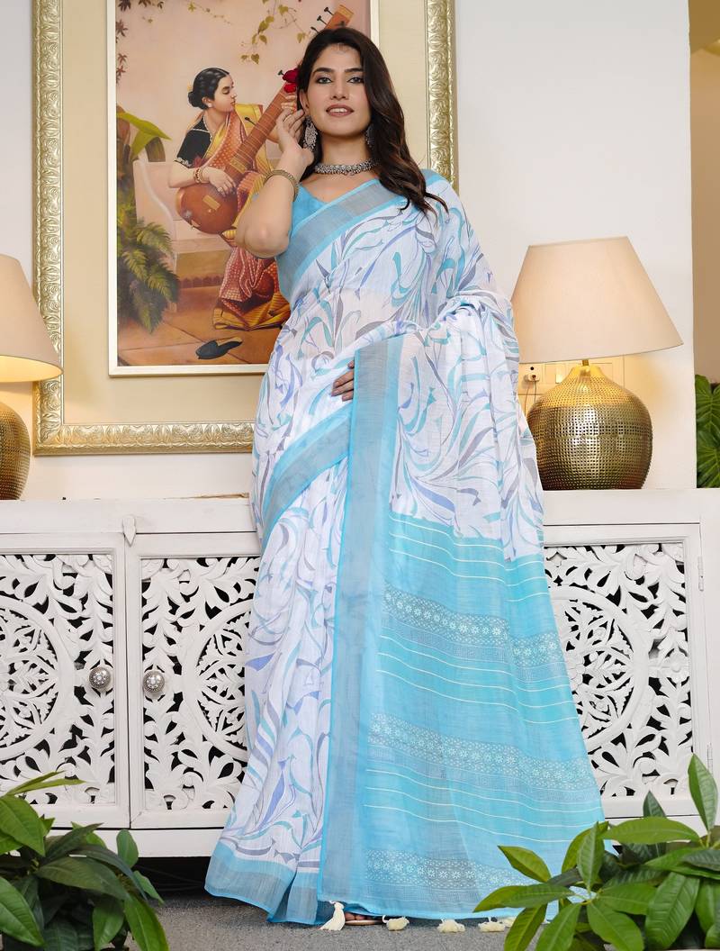 Stylish saree made from soft and breathable cotton blend fabric, featuring modern geometric prints. Lightweight, comfortable, and perfect for daily wear, office, and casual outings.