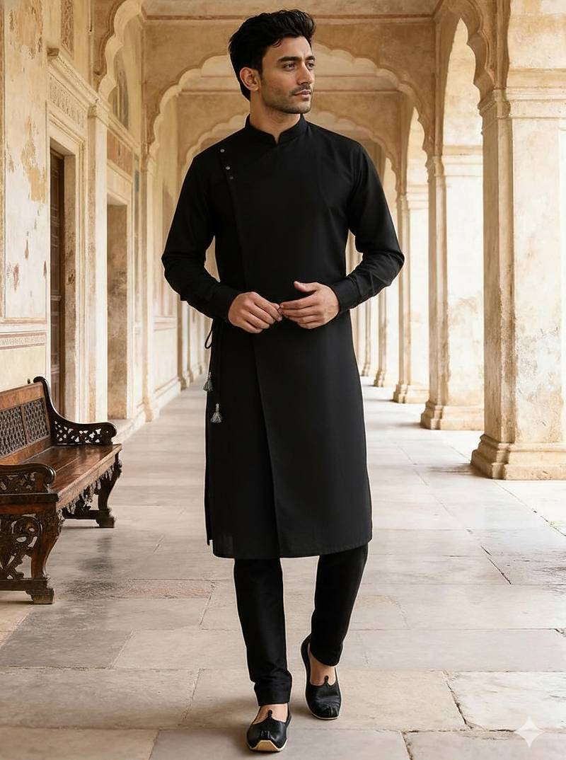 • Product Id : 4702844 • Package Details : 1 Kurta : 1 Pyjama • Type : Kurta Pajama • Fabric : Cotton • Work : Plain • Color : Black • Top Color : Black • Top Fabric : Cotton • Stitching : Stitched Payments [+]