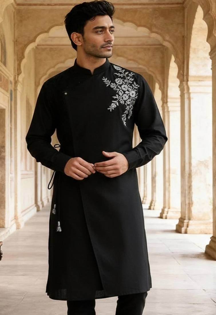 Black Embroidered Cotton Kurta