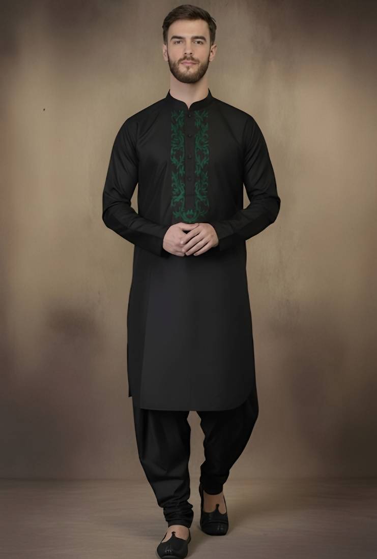 • Product Id : 4702818 • Package Details : 1 Kurta : : 1 Salwar • Type : Kurta Pajama • Fabric : Cotton • Work : Embroidered • Color : Black • Top Color : Black • Top Fabric : Cotton • Stitching : Stitched Payments [+]