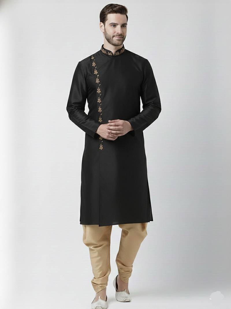 • Product Id : 4702822 • Package Details : 1 Kurta : 1 Dhoti • Type : Dhoti Kurta • Fabric : Dupion • Work : Embroidered • Color : Black • Top Color : Black • Top Fabric : Dupion Silk • Stitching : Stitched Payments [+]