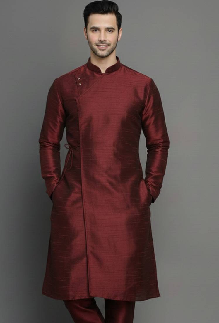 • Product Id : 4706596 • Package Details : 1 Kurta • Type : Kurta • Fabric : Dupion • Work : Embroidered • Sleeve : Full Sleeve • Color : Maroon • Top Color : Maroon • Top Fabric : Dupion Silk • Stitching : Stitched Payments [+]