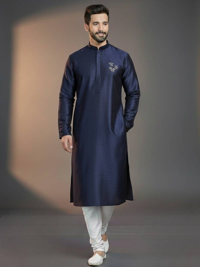 • Product Id : 4710373 • Package Details : 1 Kurta : 1 Pyjama • Type : Kurta Pajama • Fabric : Dupion • Work : Embroidered • Color : Blue • Top Color : Blue • Top Fabric : Dupion Silk • Stitching : Stitched Payments [+]
