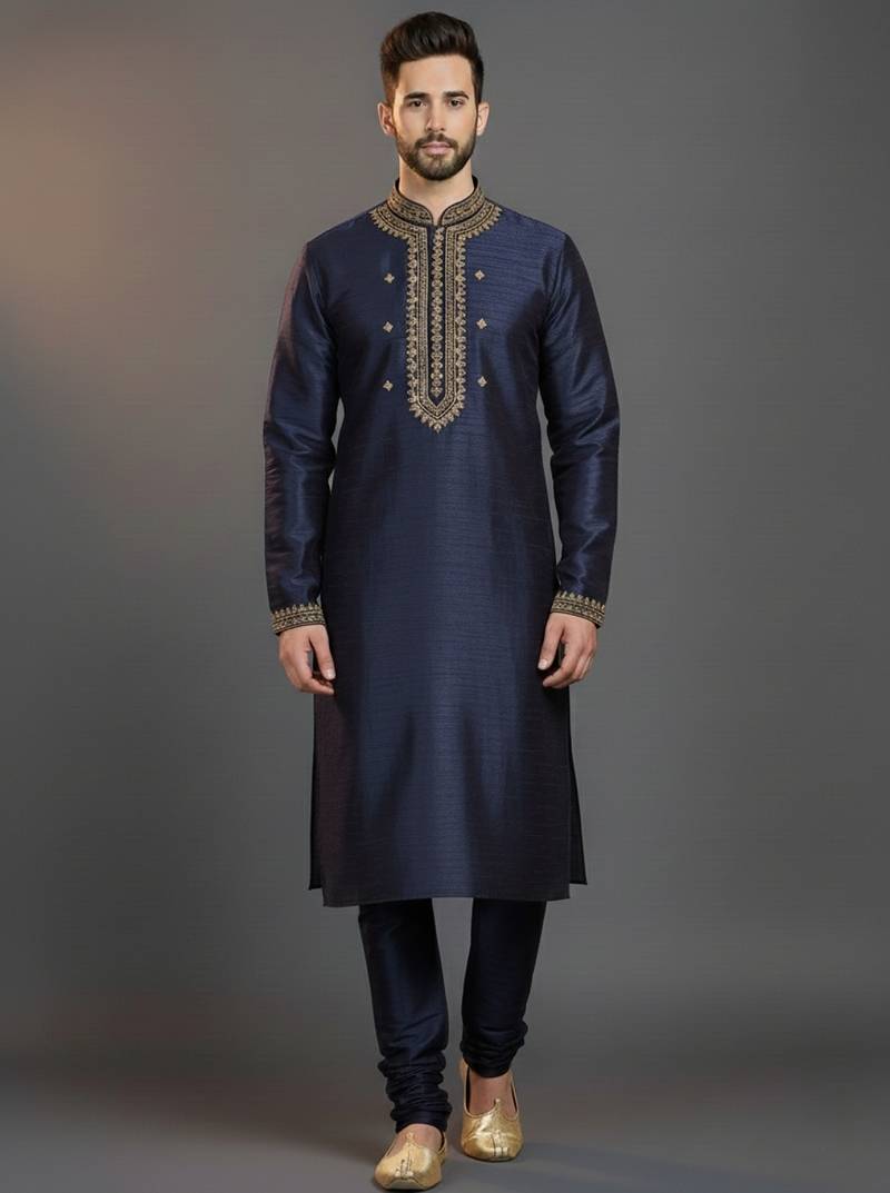 • Product Id : 4710386 • Package Details : 1 Kurta : 1 Pyjama • Type : Kurta Pajama • Fabric : Dupion • Work : Embroidered • Color : Blue • Top Color : Blue • Top Fabric : Dupion Silk • Stitching : Stitched Payments [+]