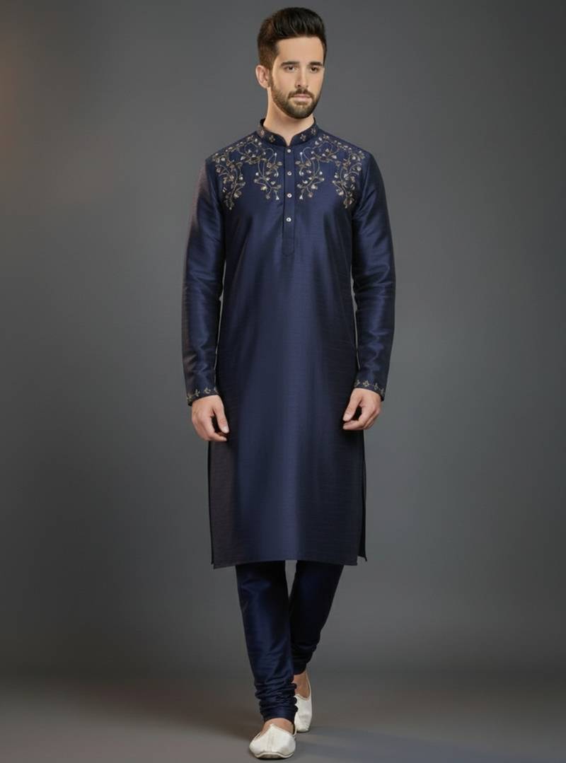 • Product Id : 4710394 • Package Details : 1 Kurta : 1 Pyjama • Type : Kurta Pajama • Fabric : Dupion • Work : Embroidered • Color : Blue • Top Color : Blue • Top Fabric : Dupion Silk • Stitching : Stitched Payments [+]