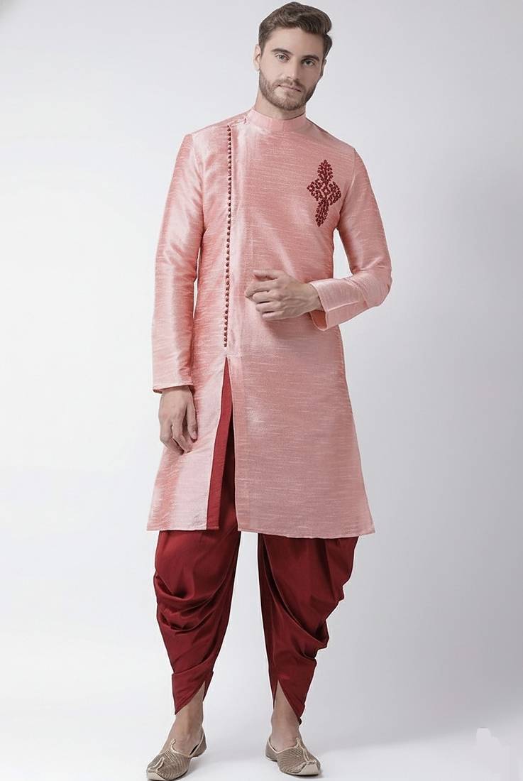 • Product Id : 4680305 • Package Details : 1 Kurta / 1 Bottom • Type : Dhoti Kurta • Fabric : Dupion • Work : Embroidered • Color : Pink • Top Color : Pink • Top Fabric : Dupion Silk • Bottom Style : Dhoti • Stitching : Stitched Payments [+]