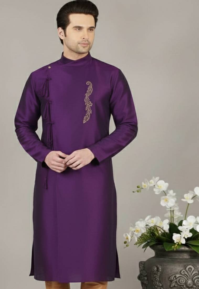 • Product Id : 4706601 • Package Details : 1 Kurta • Type : Kurta • Fabric : Dupion • Work : Embroidered • Sleeve : Full Sleeve • Color : Purple • Top Color : Purple • Top Fabric : Dupion Silk • Stitching : Stitched Payments [+]