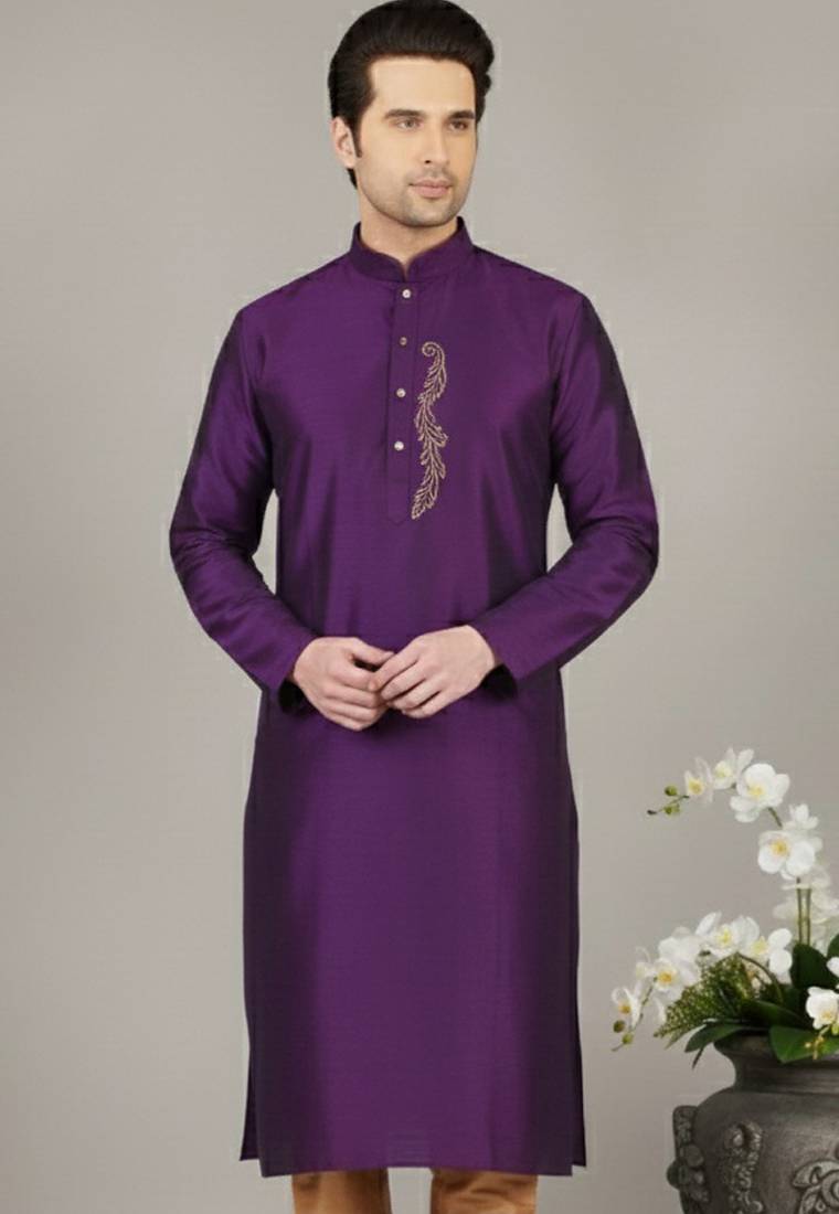 Purple Embroidered Dupion Silk Kurta