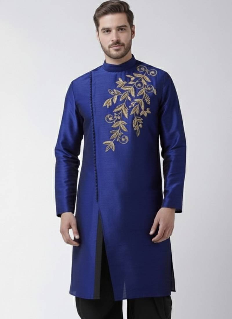 Royal Blue Embroidered Dupion Silk Kurta