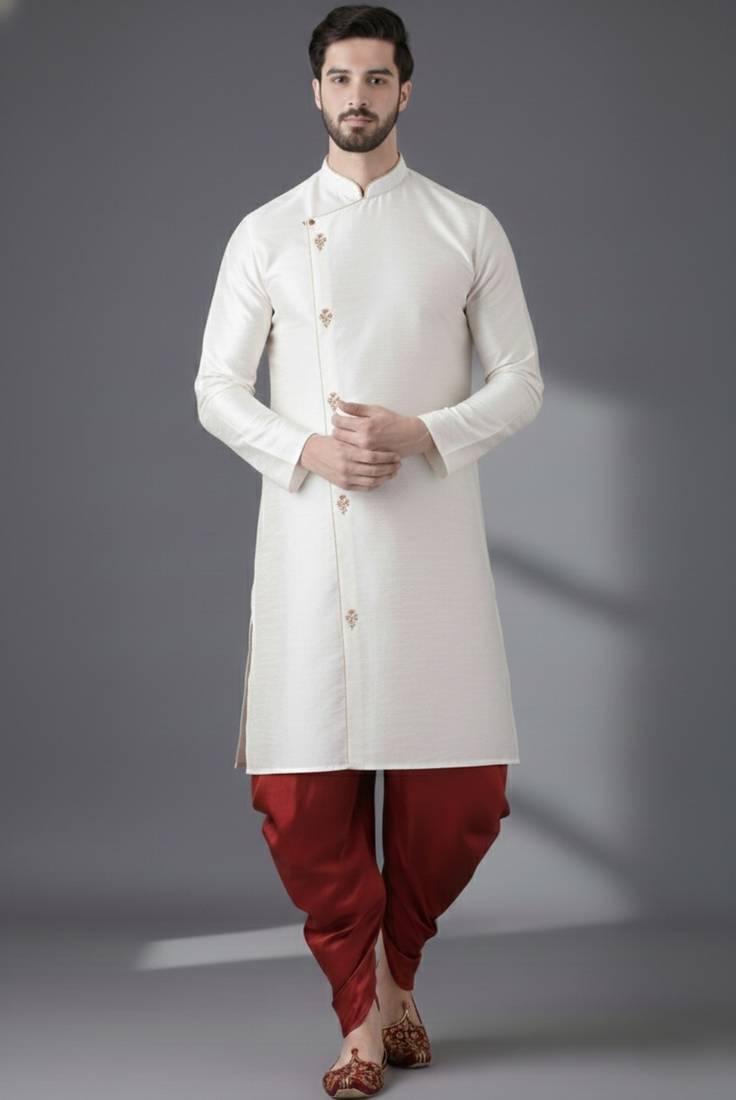• Product Id : 4710350 • Package Details : 1 Kurta : : 1 Dhoti • Type : Dhoti Kurta • Fabric : Dupion • Work : Embroidered • Color : White • Top Color : White • Top Fabric : Dupion Silk • Stitching : Stitched Payments [+]