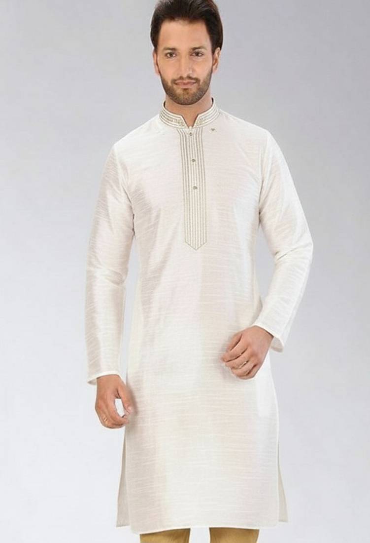 White Embroidered Dupion Silk Kurta