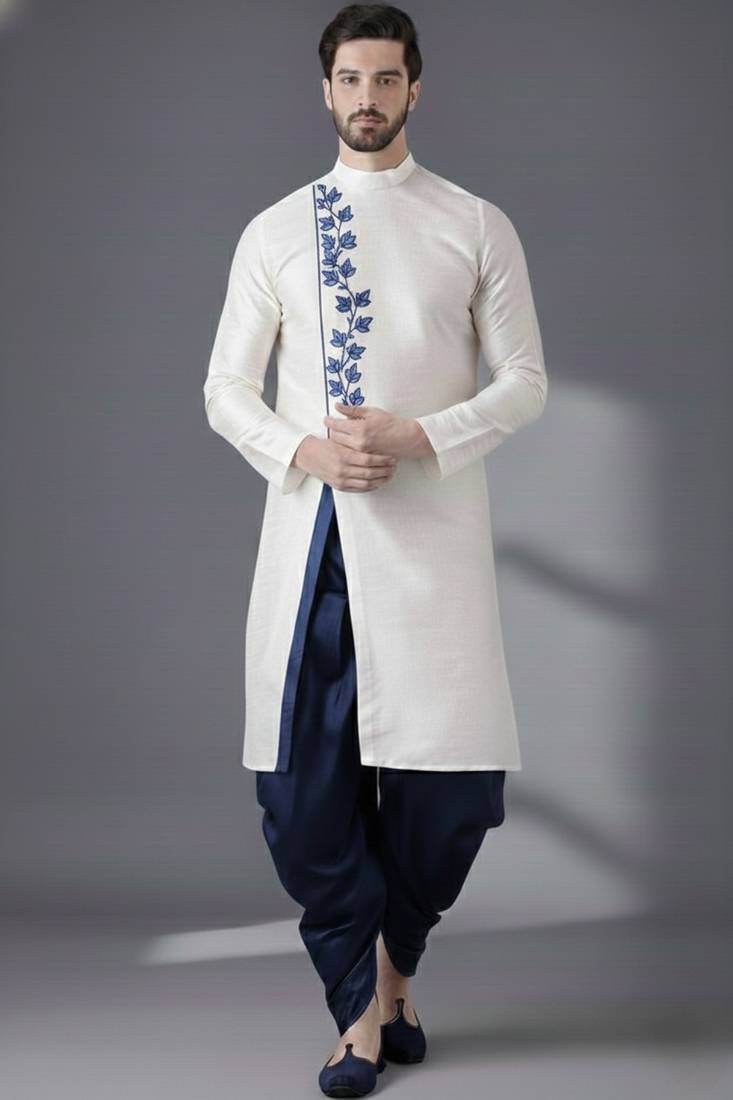 • Product Id : 4702885 • Package Details : 1 Kurta : 1 Dhoti • Type : Dhoti Kurta • Fabric : Dupion • Work : Embroidered • Color : White • Top Color : White • Top Fabric : Dupion Silk • Stitching : Stitched Payments [+]