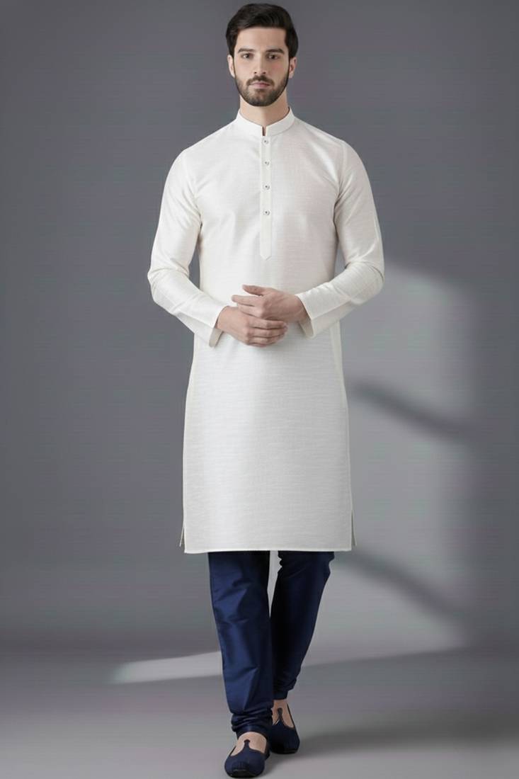 • Product Id : 4702810 • Package Details : 1 Kurta : 1 Pyjama • Type : Kurta Pajama • Fabric : Dupion • Work : Embroidered • Color : White • Top Color : White • Top Fabric : Dupion Silk • Stitching : Stitched Payments [+]