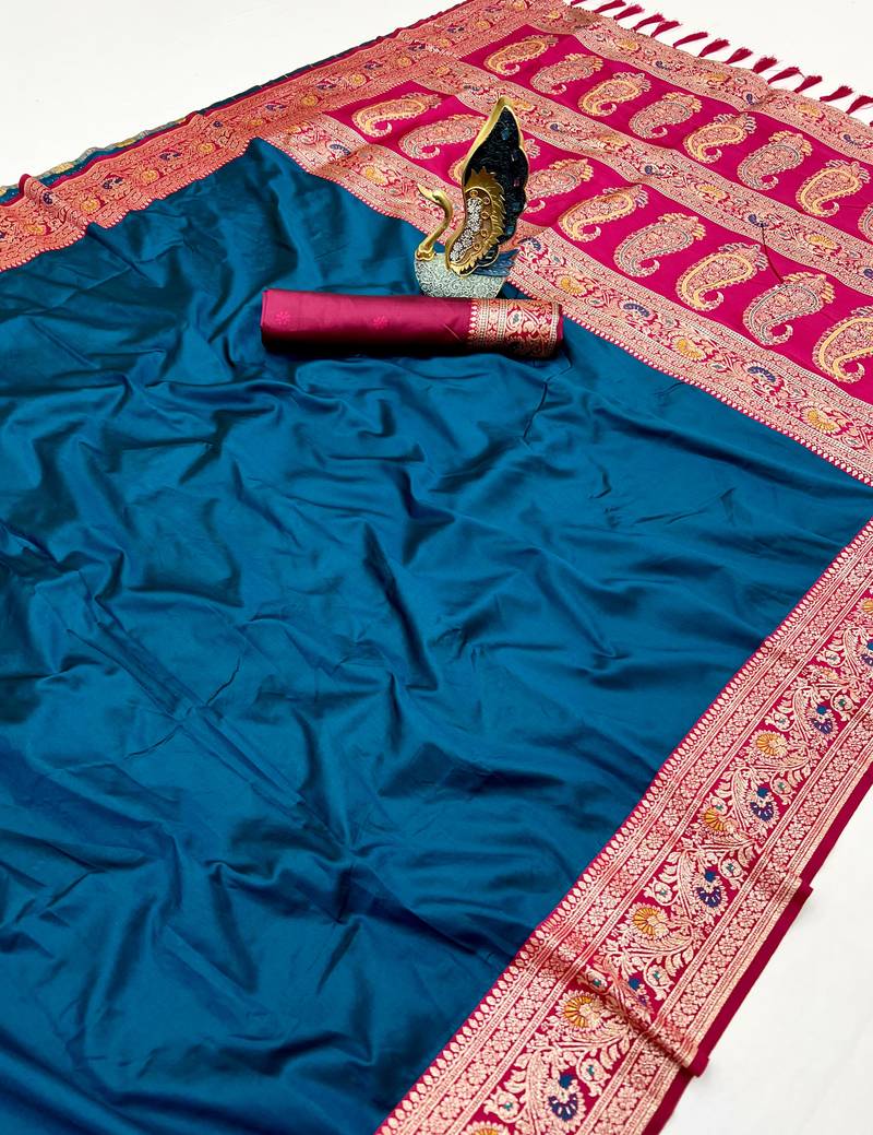 Tessels attached at Pallu end.Blouse :- Soft silk weawing designer contrast blouse piece