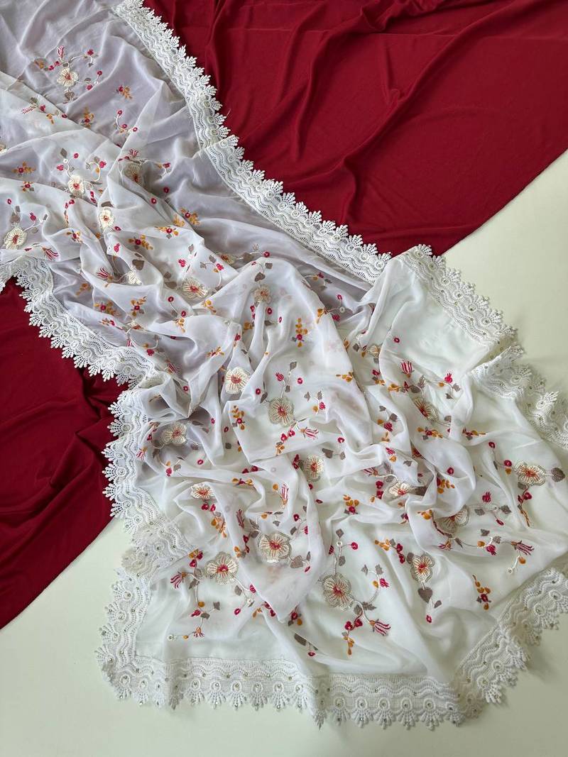 • Color : White • Work : Embroidered • Fabric Of : Georgette • Size : 0.80 Meter Other Details