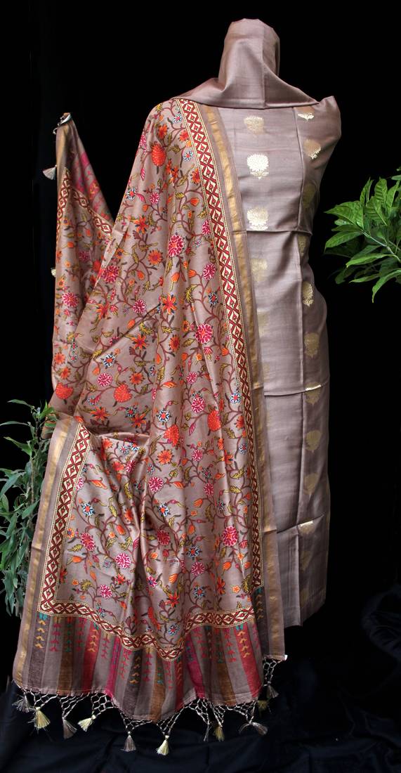 Mouse Color Zari Woven Soft Silk Unstitched Suit
