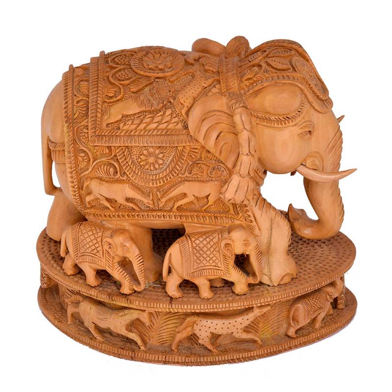 Indian Art Work Handmade Wooden Good Luck Elephant Statue Idol