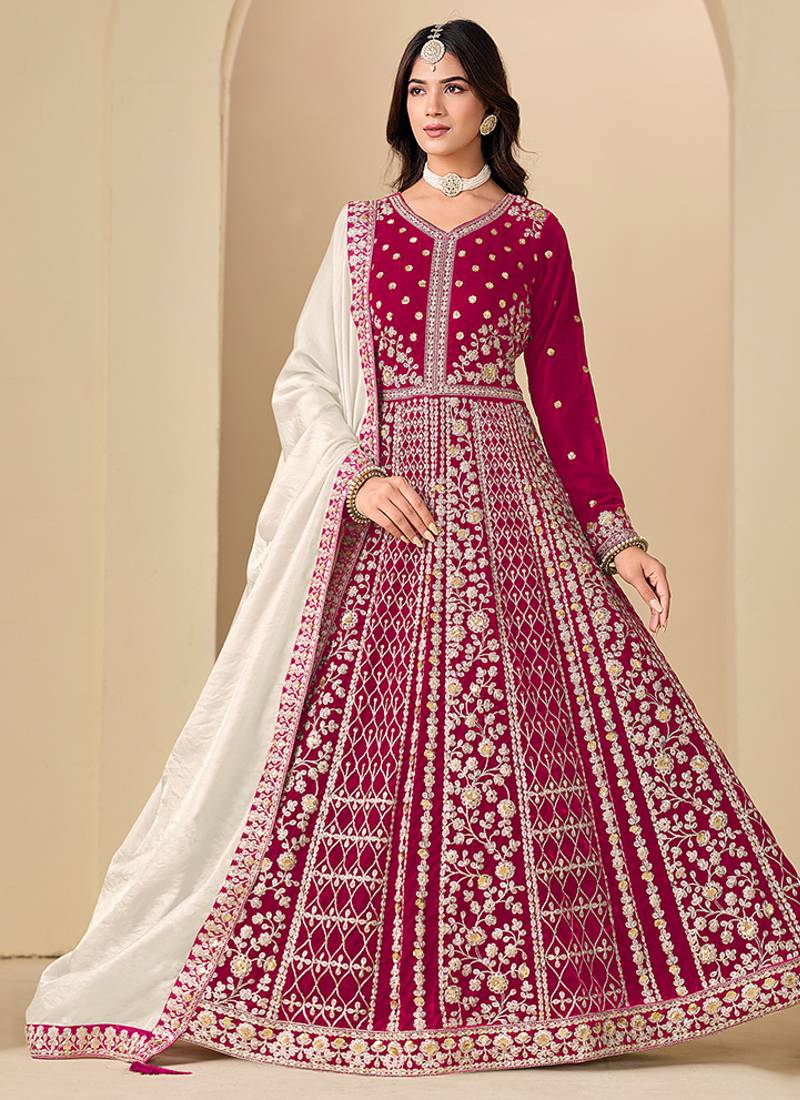• Product Id : 4698246 • Package Details : 1 Top/1 Bottom/1 Dupatta • Type : Anarkali Suit • Work : Embroidered • Type : Sequins Work • Look : Fashion • Sleeve : Full Sleeve • Neck Style : V Neck • Stitching : Semi Stitched • Fabric : Velvet • Color : Pink • Min Bustsize Fit : 36.0 • Max Bustsize Fit : 44.0 Stitching [+]