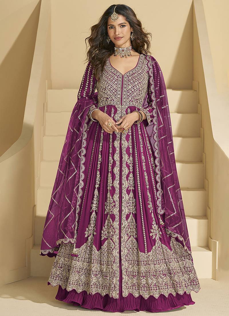 Rani Embroidery Codding Sequence Work With Chinon Silk Anarkali For Women Semi stitched