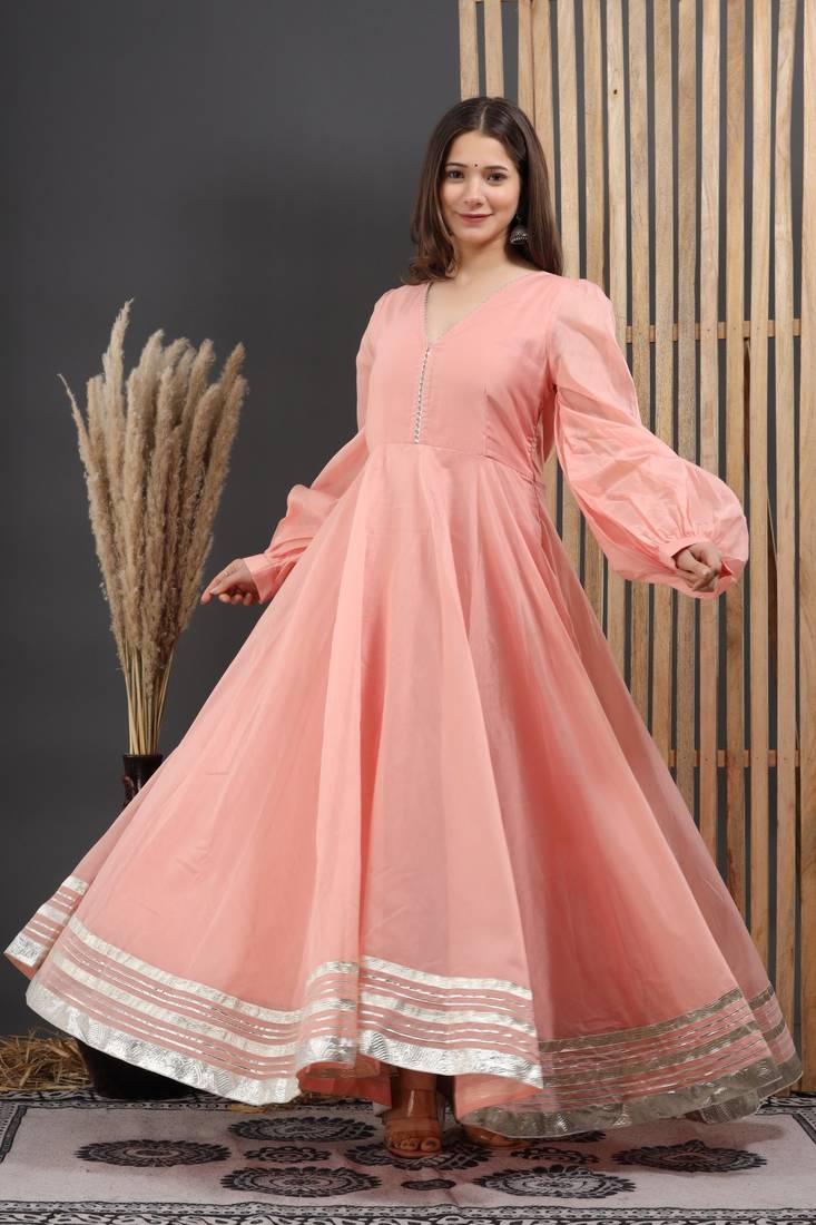 Peach Chanderi Gota Gown Dress