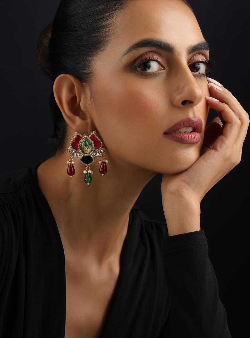 These Gold-Plated Multicolour Polki Dangler Earrings Are A Stunning Blend Of Elegance And Festivity. Featuring Intricate Polki Work Adorned With Vibrant Coloured Stones, They Are Finished With Rich Gold Plating For A Luxurious Touch. Perfect For Weddings, Festive Occasions, And Celebrations, They Complement Both Traditional And Contemporary Outfits Beautifully.