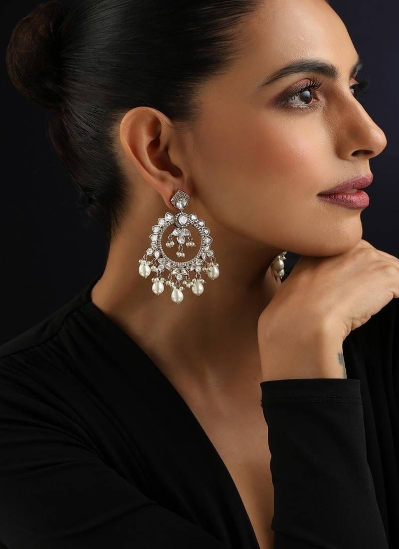 • Product Id : 4645789 • Package Details : 1 Set Earrings • Type : Earrings • Occasion : Wedding • Look : Traditional • Jewellery Work : Polki • Color : White • Plating : Yellow Gold • Base Material : Brass • Care : Spot Cleaning Only. Store In A Separate Box. Keep Away From Fragrance And Water. • Finish : Glossy Payments [+]