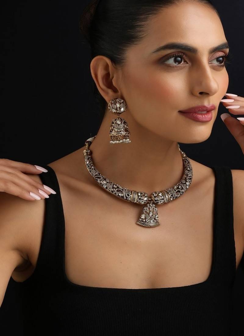 • Product Id : 4645804 • Package Details : 1 Necklace / 1 Set Earrings • Type : Necklace Sets • Occasion : Wedding • Look : Contemporary • Jewellery Work : Polki • Color : Gold • Plating : Yellow Gold • Base Material : Brass • Care : Spot Cleaning Only. Store In A Separate Box. Keep Away From Fragrance And Water. • Finish : Matte Payments [+]