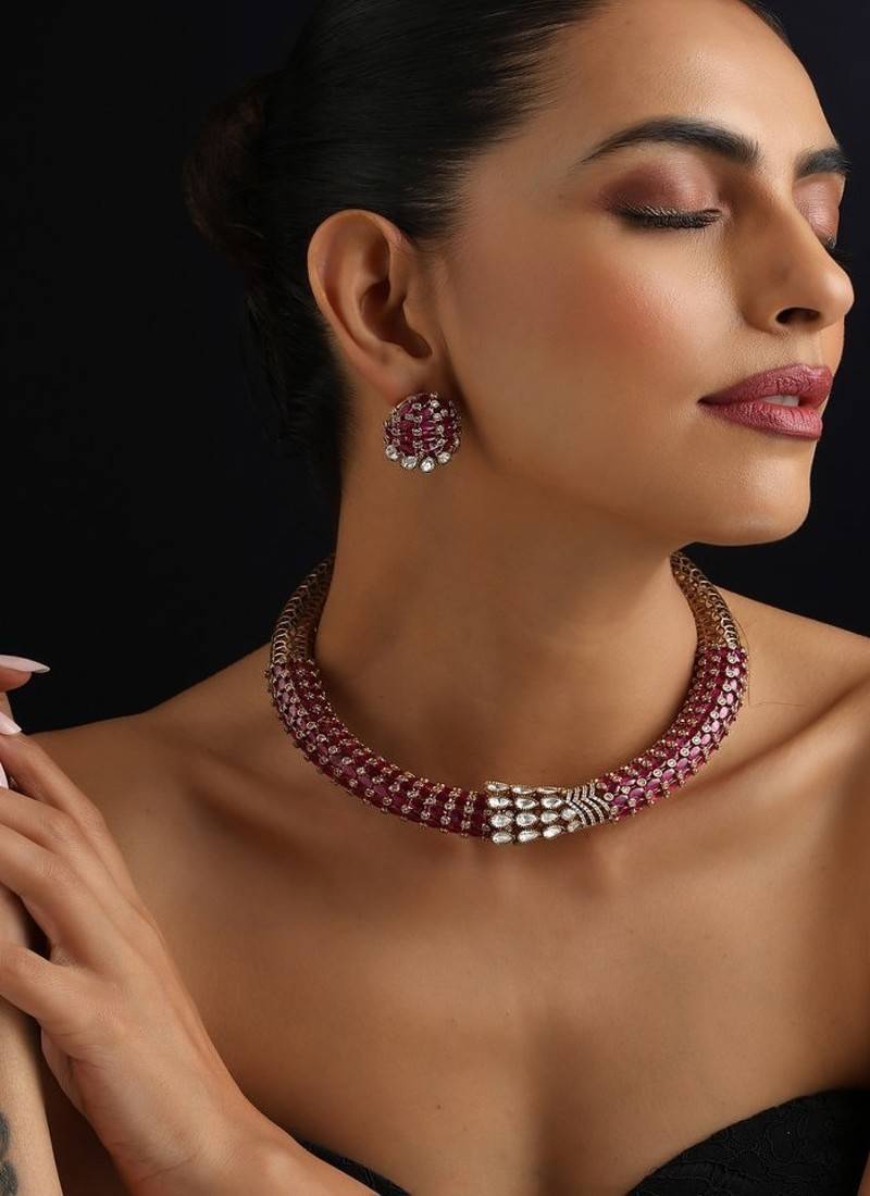 • Product Id : 4645800 • Package Details : 1 Necklace / 1 Set Earrings • Type : Necklace Sets • Occasion : Wedding • Look : Contemporary • Jewellery Work : Polki • Color : Red • Plating : Yellow Gold • Base Material : Silver • Care : Spot Cleaning Only. Store In A Separate Box. Keep Away From Fragrance And Water. • Finish : Matte Payments [+]